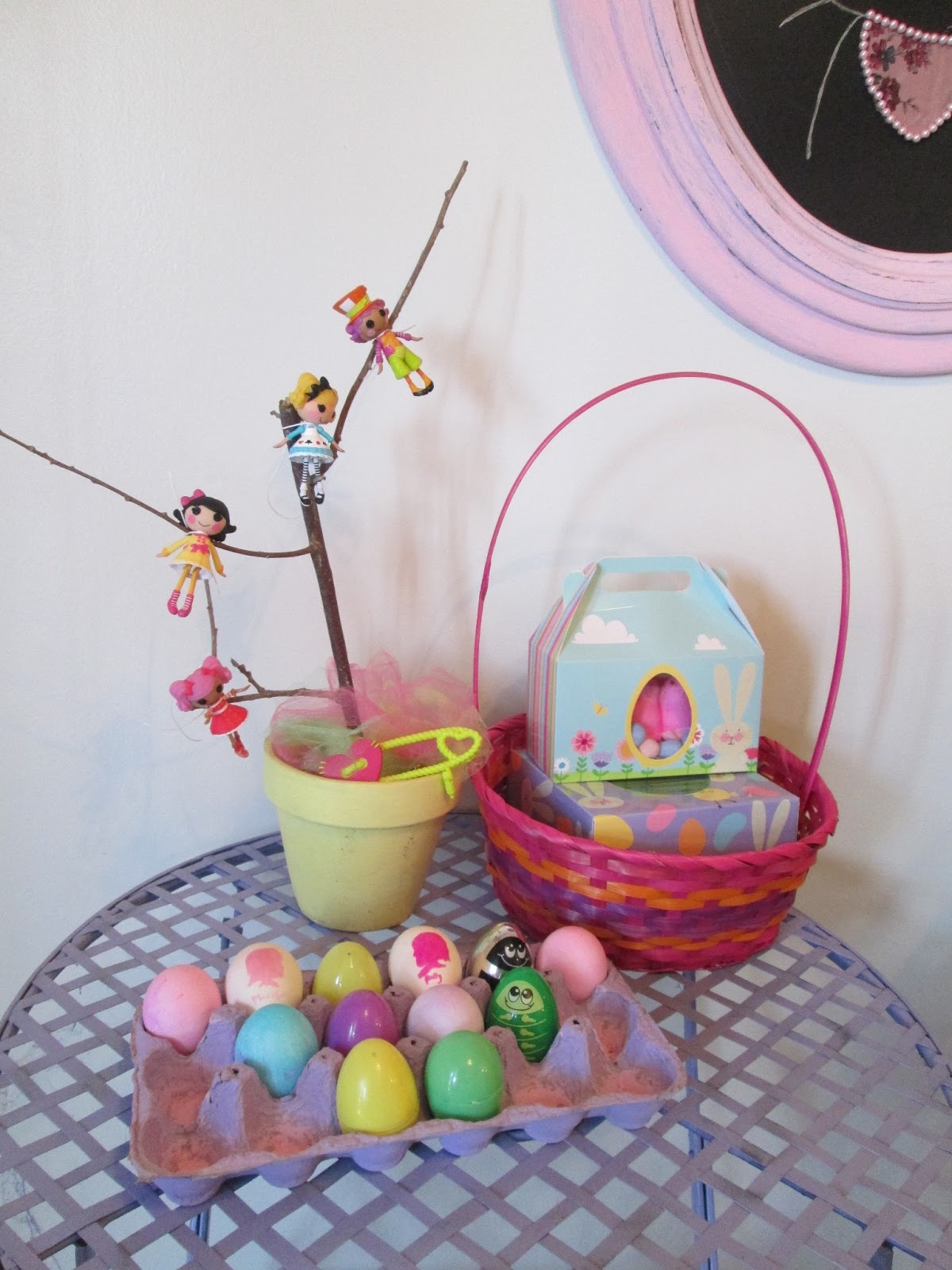 Another photo is our lalaloopsy family tree and easter eggs with the girls egg silhoutte cameo.